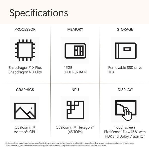Processor: Qualcomm Snapdragon X Plus Processor (10 Core up to 3.2GHz, NPU up to 45 TOPS) X1P-64-100