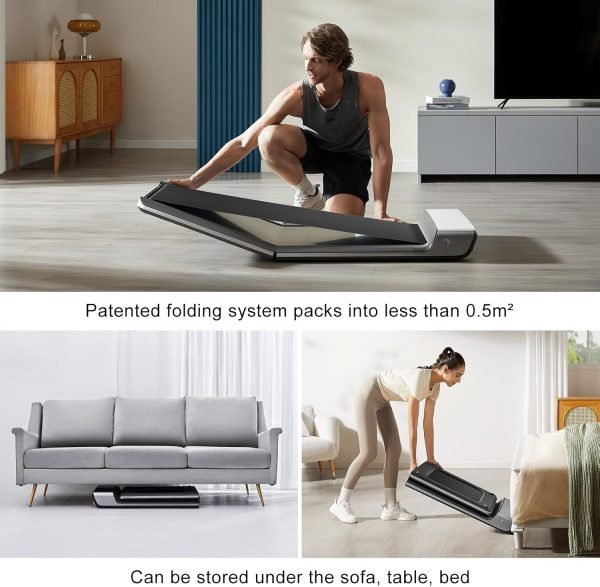 WalkingPad’s unique folding design allows it to be folded 180 degrees, greatly reducing its footprint. Very compact and can be stored in almost any corner of your home, under the sofa, under the bed and other narrow spaces.