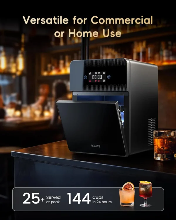 𝐄𝐚𝐬𝐲 𝐖𝐚𝐭𝐞𝐫 𝐄𝐧𝐭𝐫𝐲: Connect to a water line for endless ice without interruptions, saving time and effort. Or use the built-in tank(1.7L) for flexibility. Plus, the bottom drain design allows easy water removal when placed on a countertop