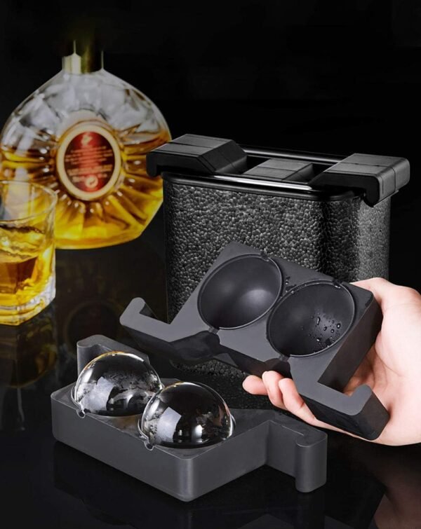 Crystal Clear Ice Ball Maker – 2 Cavity Silicone Molds – Clear Ice Ball Sphere and Whiskey Tray Maker for Whiskey (Round)