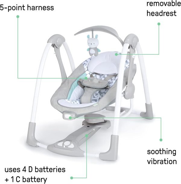 Features 5 swing settings, automatic swinging and vibrating