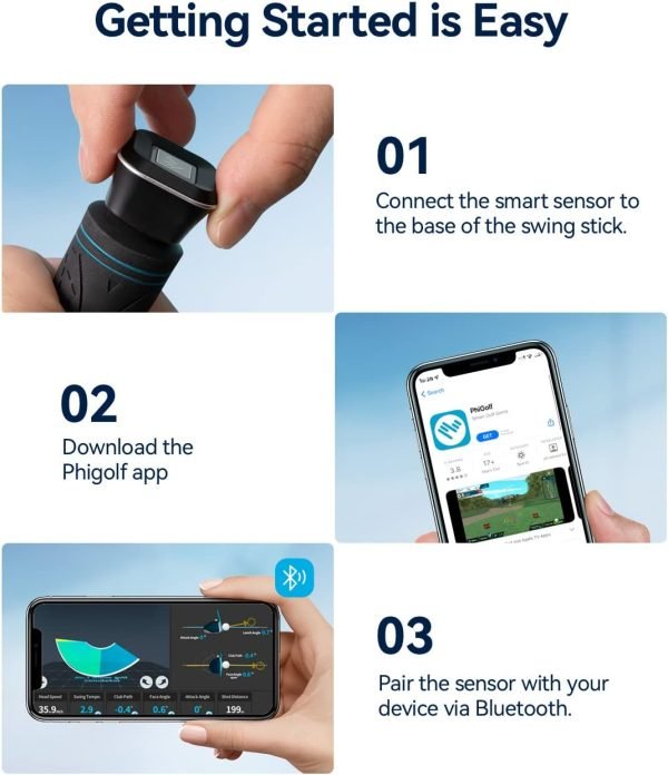EASY-TO-SET-UP GOLF PLAY:Enjoy the realistic golf play so easily only by inserting the smart sensor into the stick’s hole, downloading WGT Golf or Phi Golf app and pairing the sensor with your smart device.Phigolf is an entertaining Golf game where you control the gameplay with a real Golf swing and easy-to-set up with the gameplay available on 2 amazing apps.