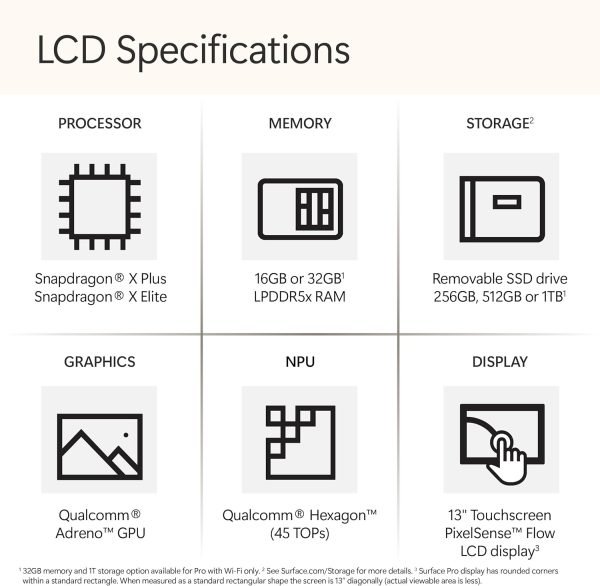 Microsoft Surface Pro 2-in-1 Laptop/Tablet (2024), Windows 11 Copilot+ PC, 13″ Touchscreen Display, Snapdragon X Plus (10 Core), 16GB RAM, 512GB Storage, Sapphire