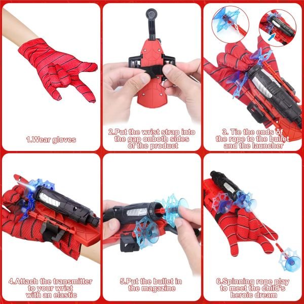 【Spider Glove Launcher Safe material】: Hero launcher wrist toy made of high-quality plastic material to ensure that it will not cause any harm to the user during play. At the same time, the spider silk it emits is also soft and will not damage furniture or harm the human body. Parents can let their children play with confidence.